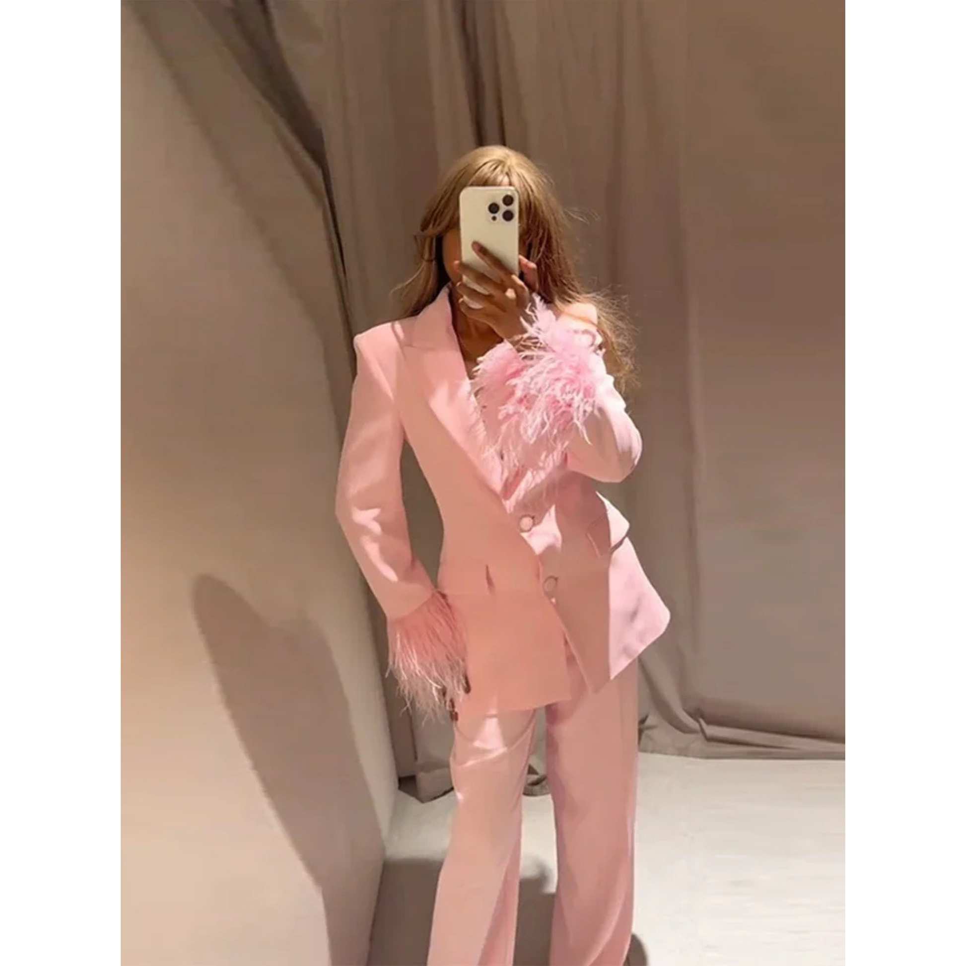 Elegant Feather Patchwork Suit Set for Women - Spring 2025