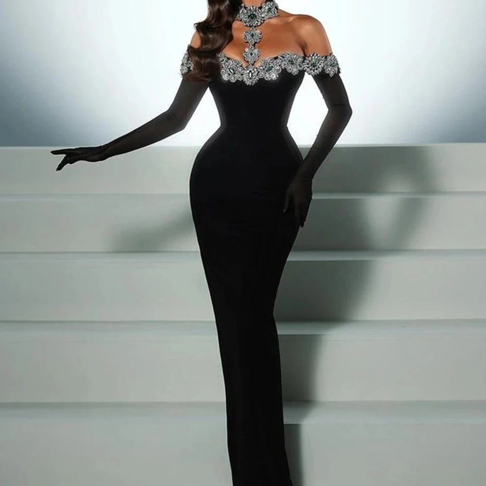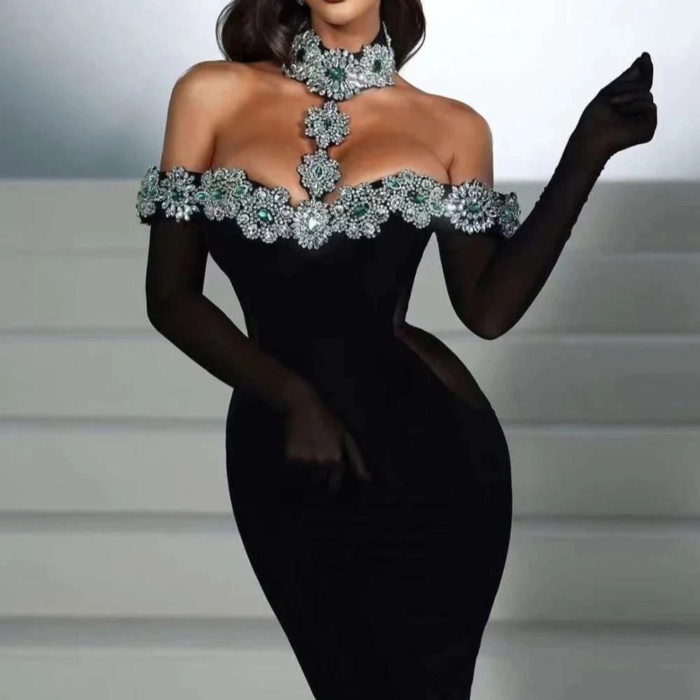 Make an unforgettable entrance with our Luxury Diamond Chain Halter Tight Maxi Bandage Dress. This dress is a stunning statement piece, perfect for special occasions, evening parties, or red-carpet events. Designed with a sultry backless feature and a fitted bandage silhouette, this dress hugs your curves while the diamond chain halter adds a touch of elegance and luxury. Feel like a celebrity and steal the spotlight in this beautiful, fashion-forward gown.