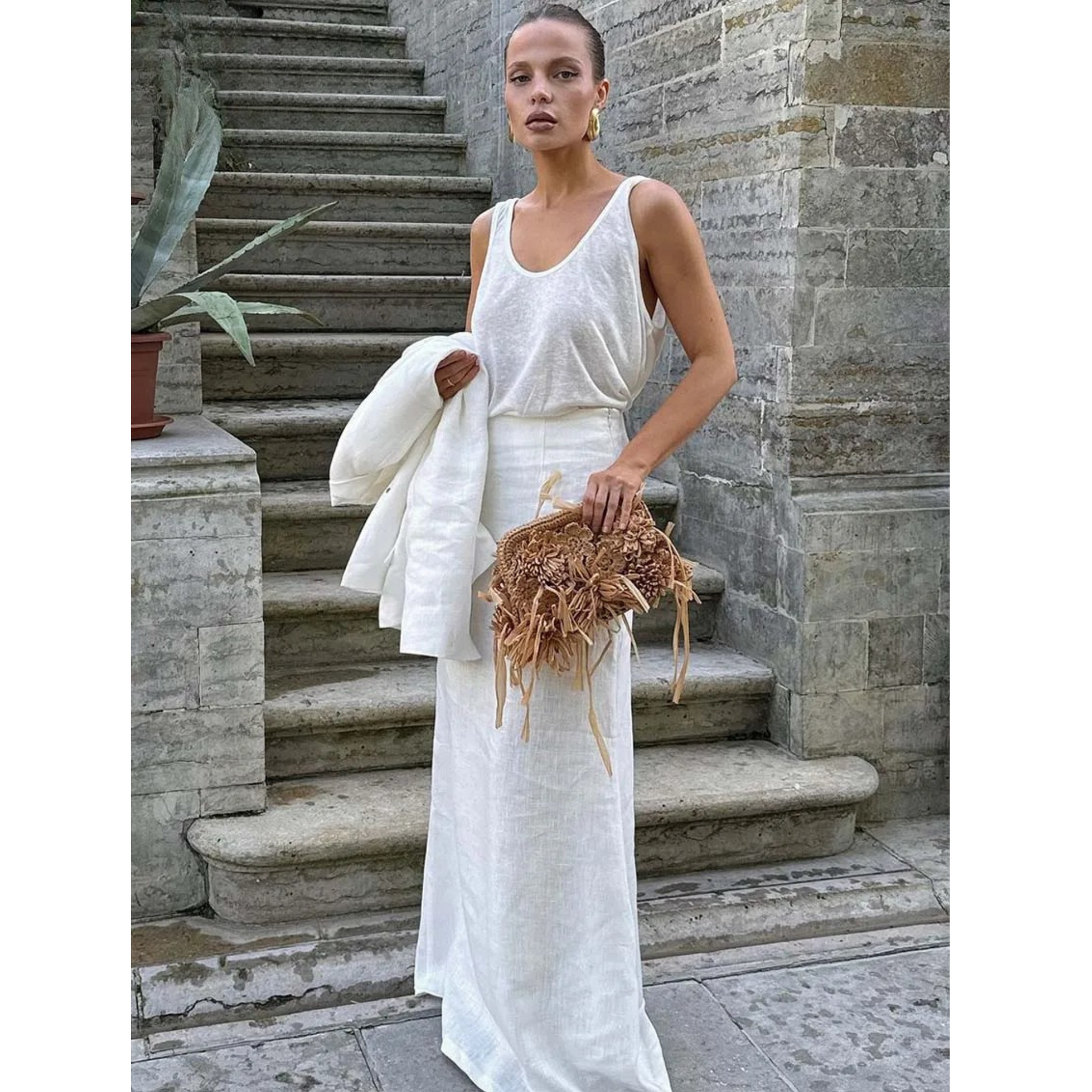 Elevate your wardrobe with the Oymimi Casual White Two-Piece Set, designed for women who appreciate elegance and comfort. This sophisticated ensemble features a long-sleeve blazer with pockets and a high-waist straight floor-length skirt, perfect for autumn and winter. Crafted from high-quality cotton and ramie, this set offers a blend of style and practicality for any occasion.