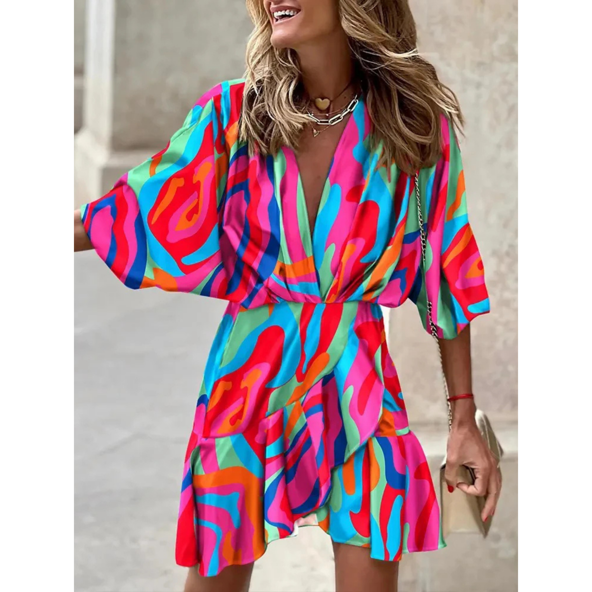 Elevate your summer wardrobe with this chic Bohemia-style mini dress. Designed for comfort and style, this dress features a flattering loose silhouette, elegant bat sleeves, and delicate ruffles. Perfect for vacations, beach outings, or casual daytime wear, it combines fashion and functionality effortlessly.