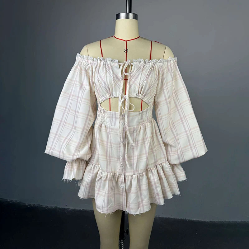 Fashion-Forward Design: The one-shoulder hollow-out design with lantern sleeves and plaid print creates a unique, eye-catching look that's perfect for any stylish occasion.
