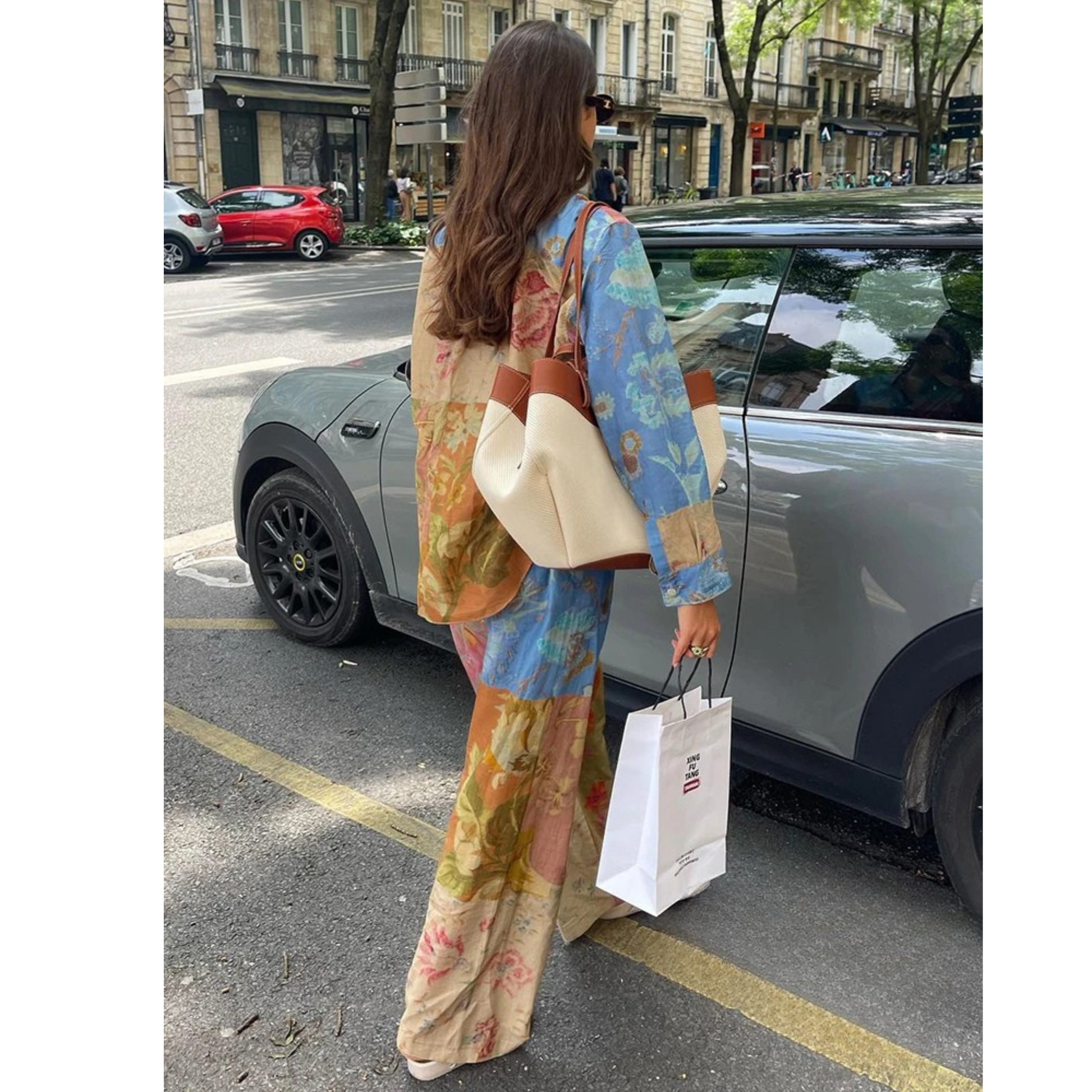 Elevate your summer wardrobe with the TRAFZA Vintage Tie Dye Print Women's Suit. This stylish boho set features a single-breasted blouse and straight loose pants, perfect for a chic, effortless look. Made from high-quality polyester poplin, this set is designed for comfort and fashion-forward style.