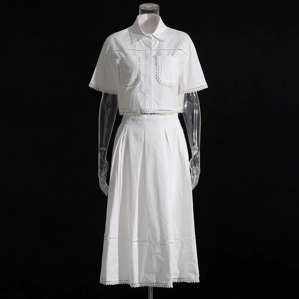 Functional Pockets: Both the shirt and skirt come with practical pockets, adding convenience without compromising on style. The shirt features a single-breasted closure and a turn-down collar for a polished look.