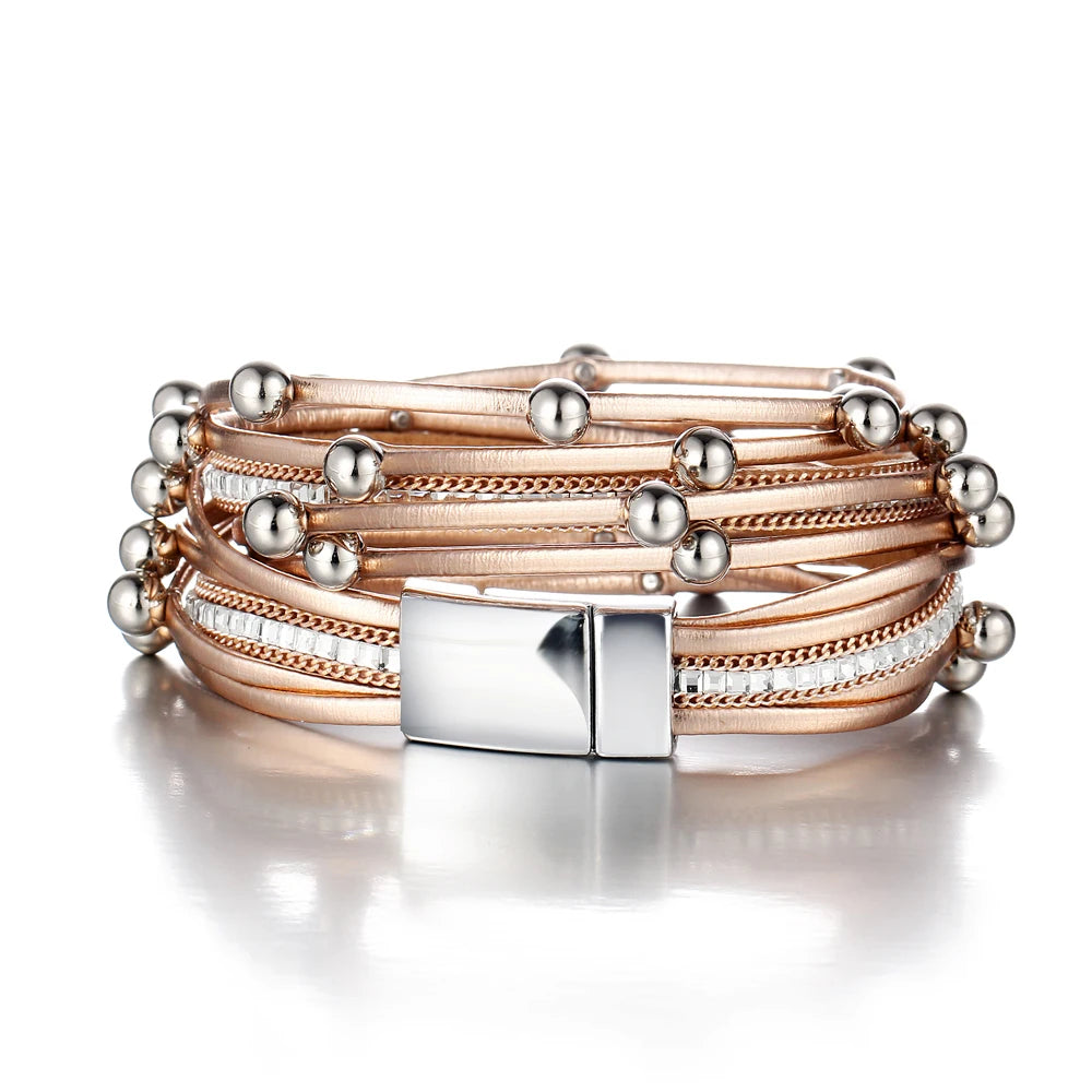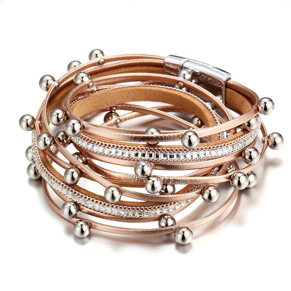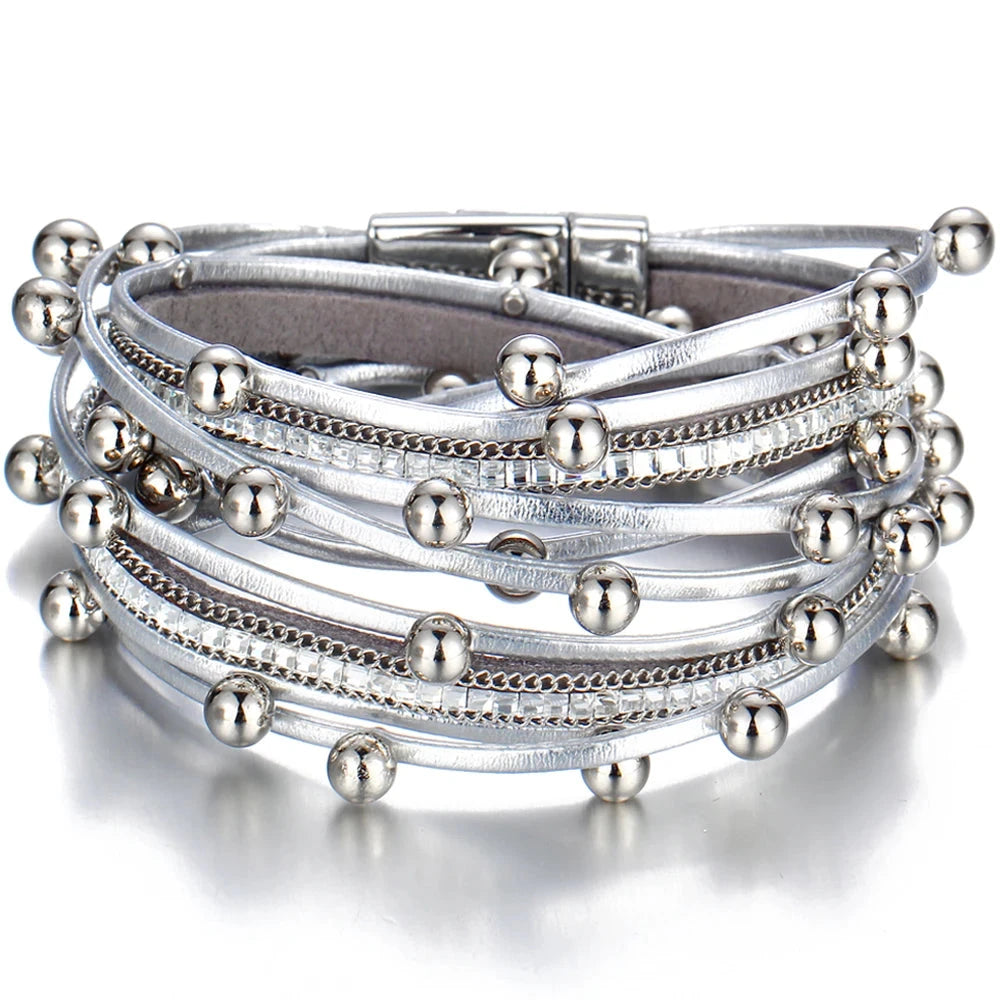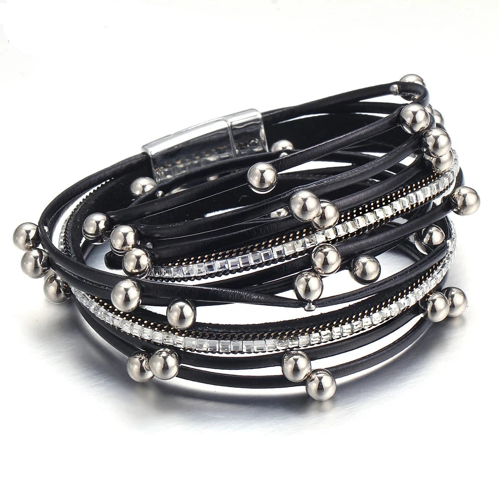 Discover a statement piece that speaks to your soul with the Vintage Multi-Layer Leather Bracelet. Created for the free-spirited woman, this bracelet combines multiple layers of high-quality leather with thoughtfully placed charms that reflect both elegance and bohemian style. The layered design, in rich, earthy tones, wraps effortlessly around your wrist, bringing texture and charm to your outfit.