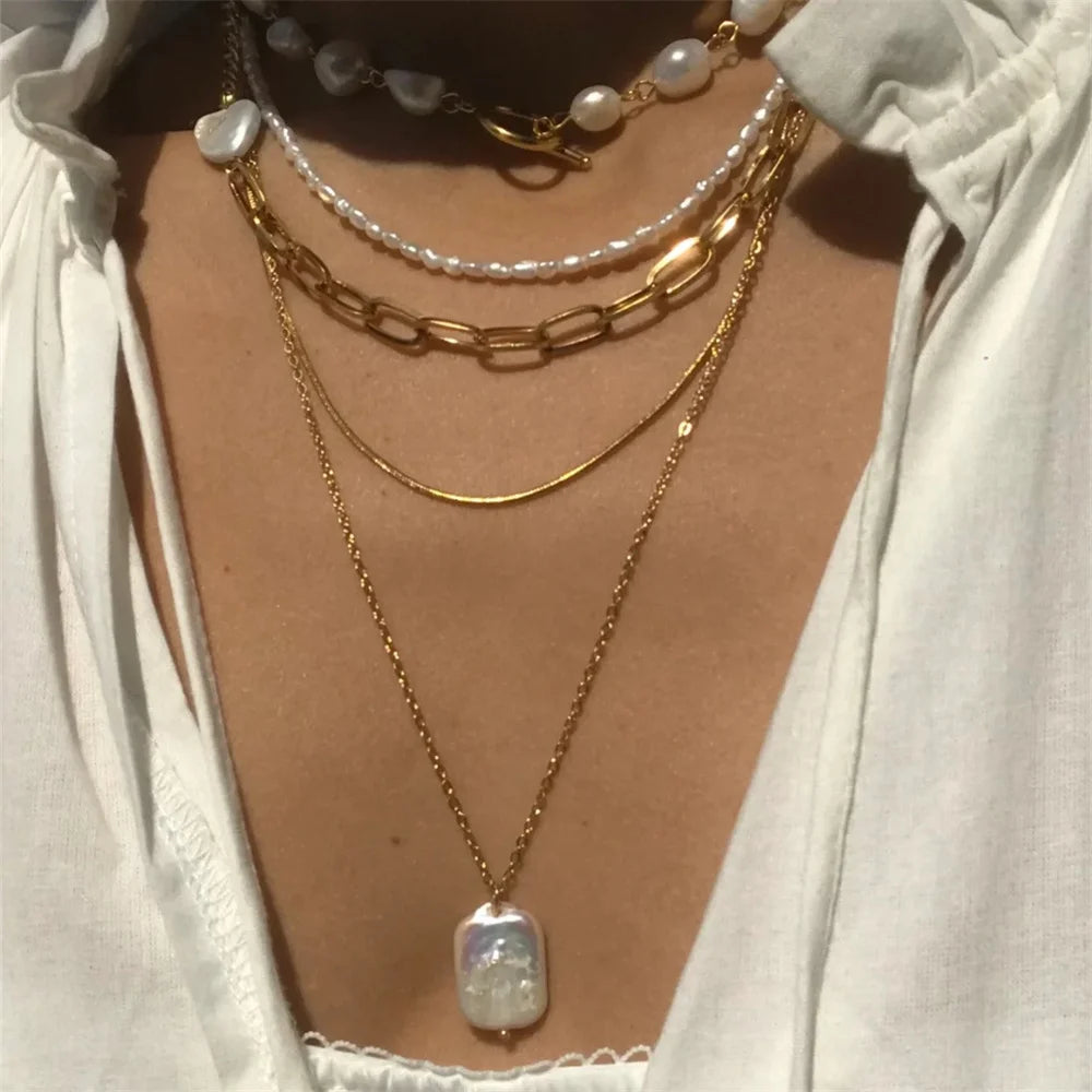 The necklace’s link chain design drapes elegantly around the neck, while the geometric pendant adds a touch of bohemian charm, blending vintage style with modern appeal. With a versatile length that’s easy to style, this multi-level necklace is ideal for pairing with both casual and formal outfits. It’s not just a necklace; it’s an expression of individuality and style, making it a thoughtful gift for loved ones or a timeless addition to your jewelry collection.