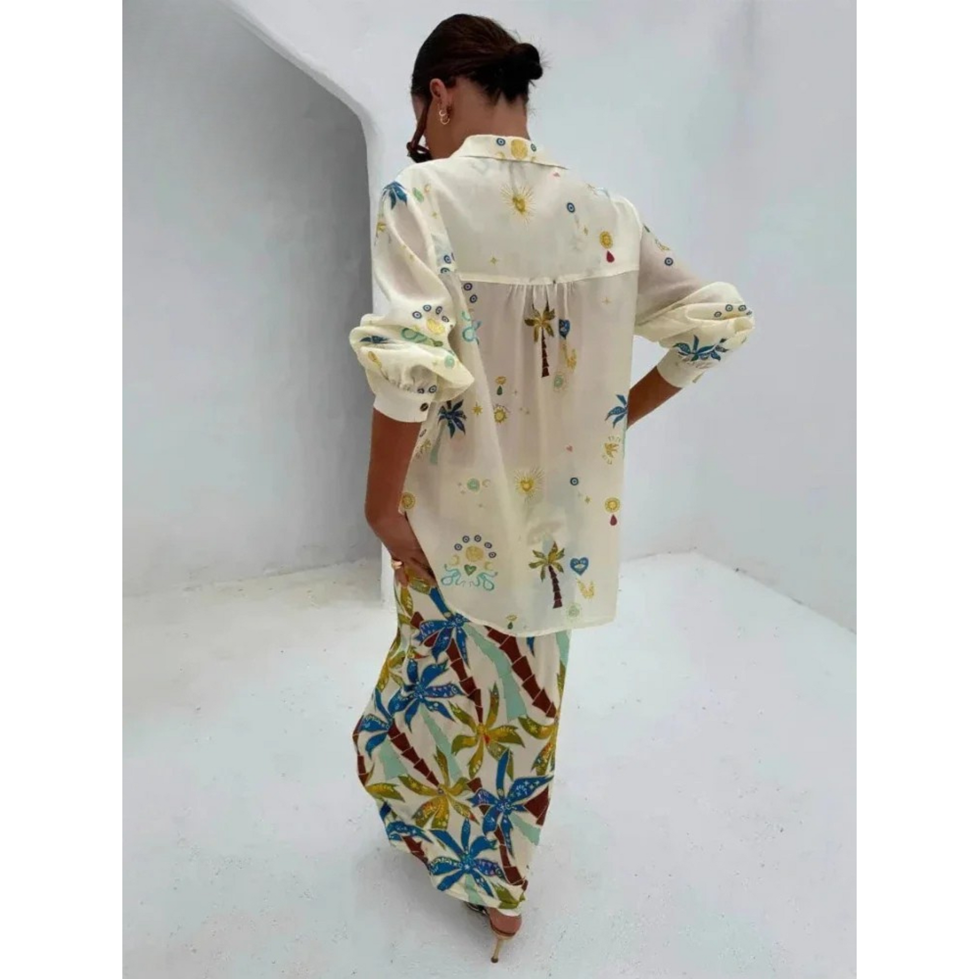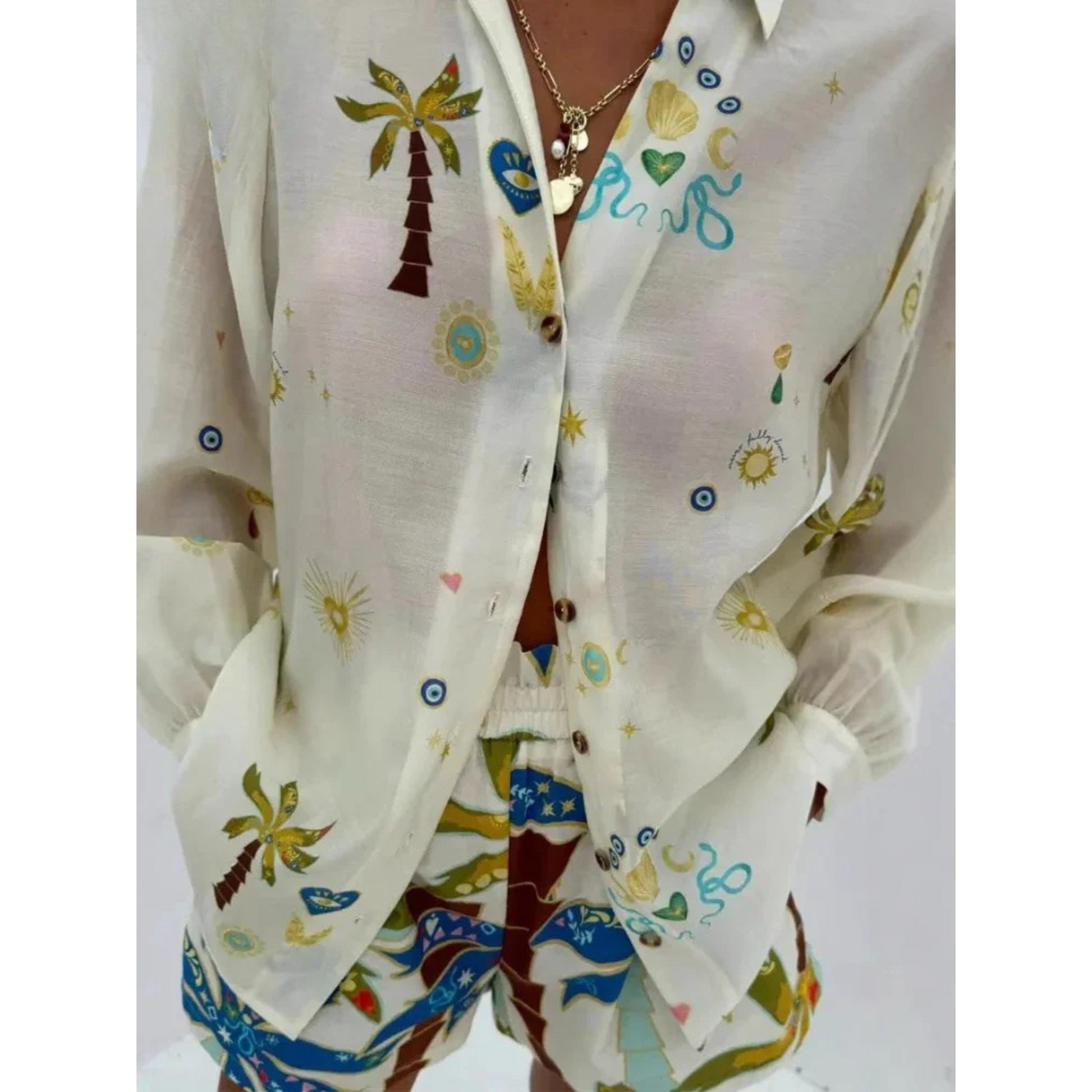 Elevate your summer wardrobe with our Women's Two-Piece Set, designed for both style and comfort. Perfect for casual outings, beach vacations, or office wear, this set features a trendy printed long-sleeve top paired with loose shorts. Made from a breathable blend of polyester and linen, it ensures all-day comfort while keeping you fashionable.