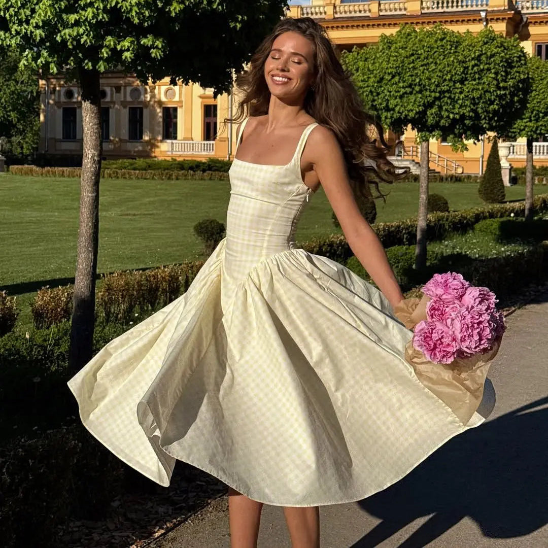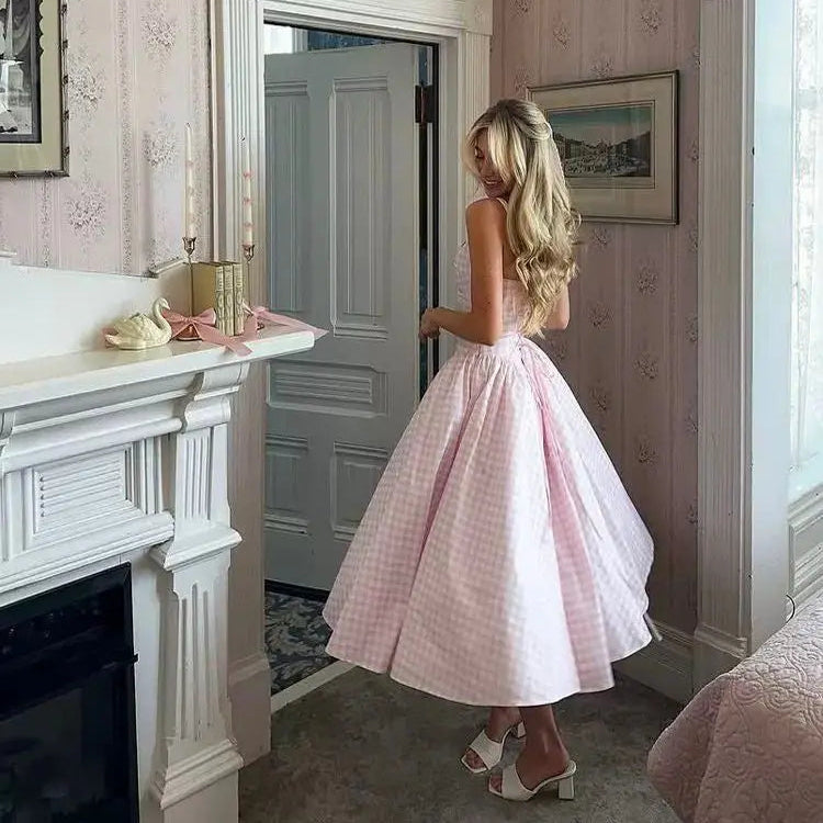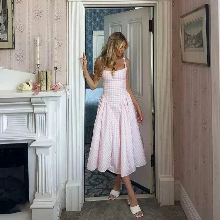 Elegant Lace-Up Plaid Dress for Summer & Holiday Parties